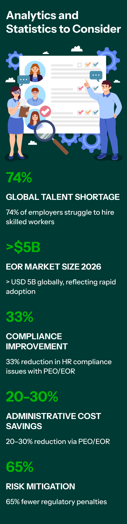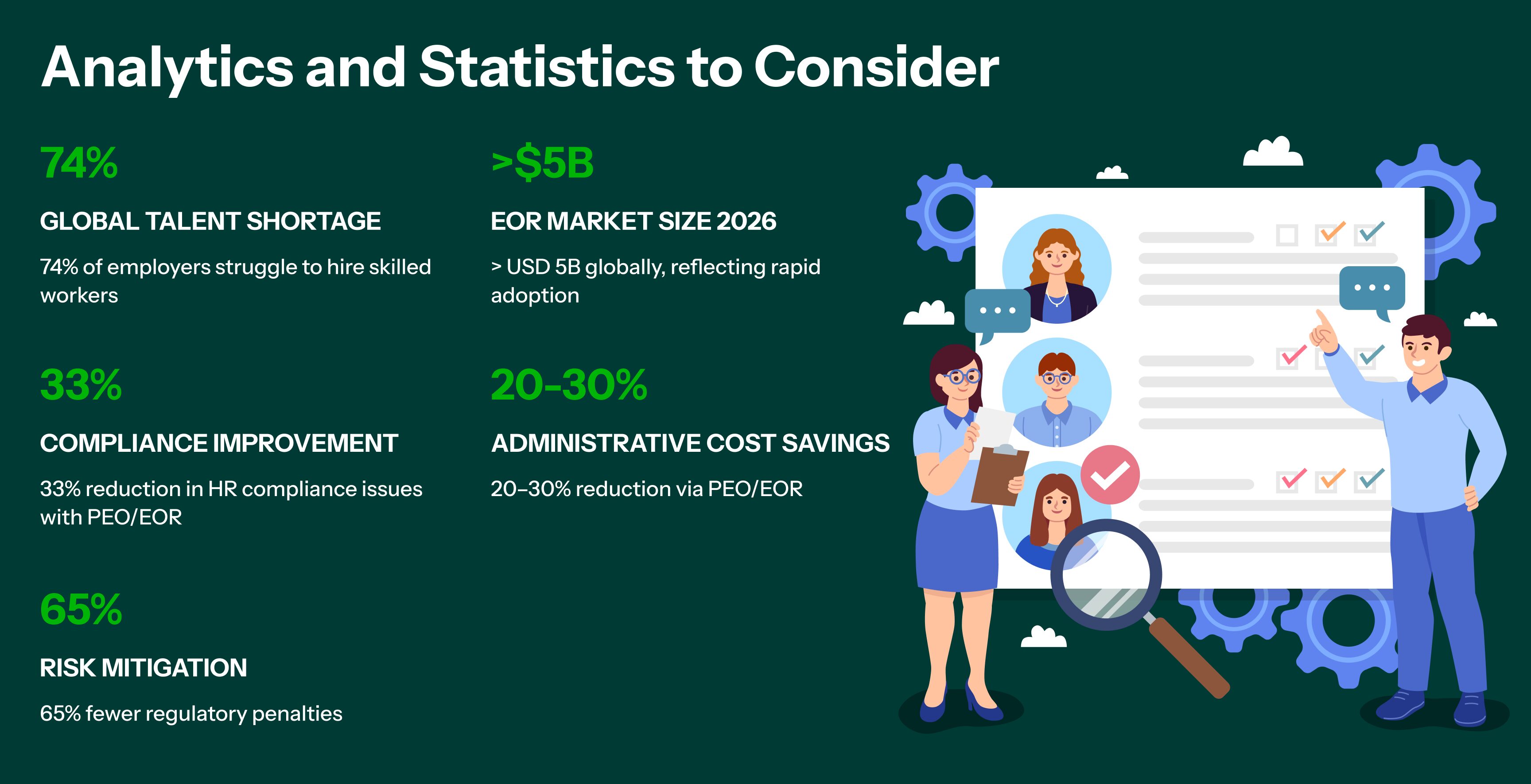 With these trends, selecting a reliable PEO or EOR partner is no longer just an operational decision—it’s strategic business planning.