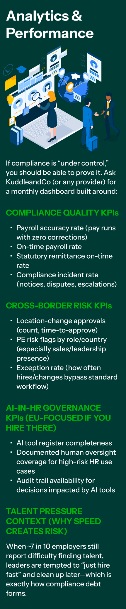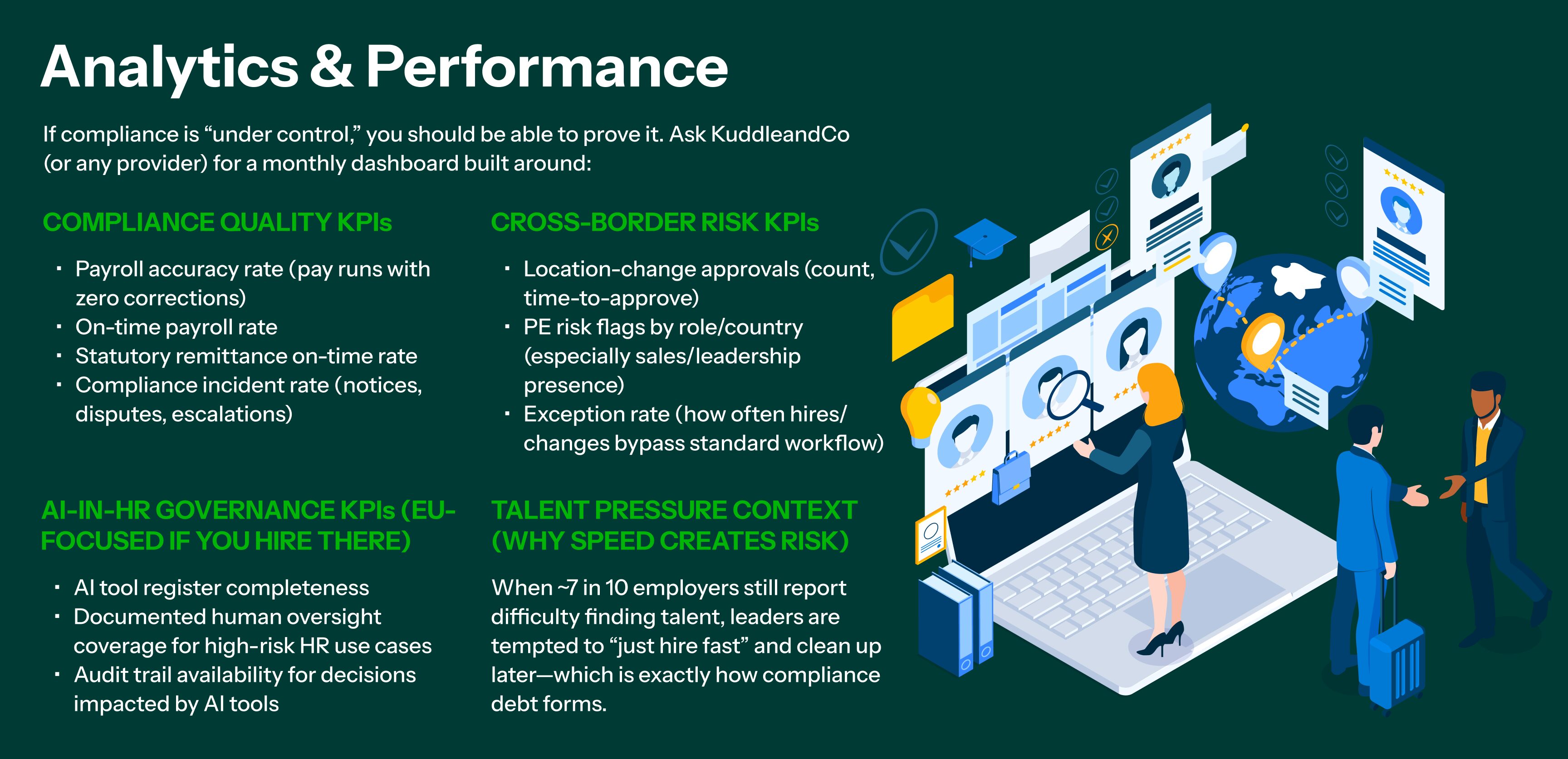 • Cross-border hires being approved before payroll/tax setup is ready
