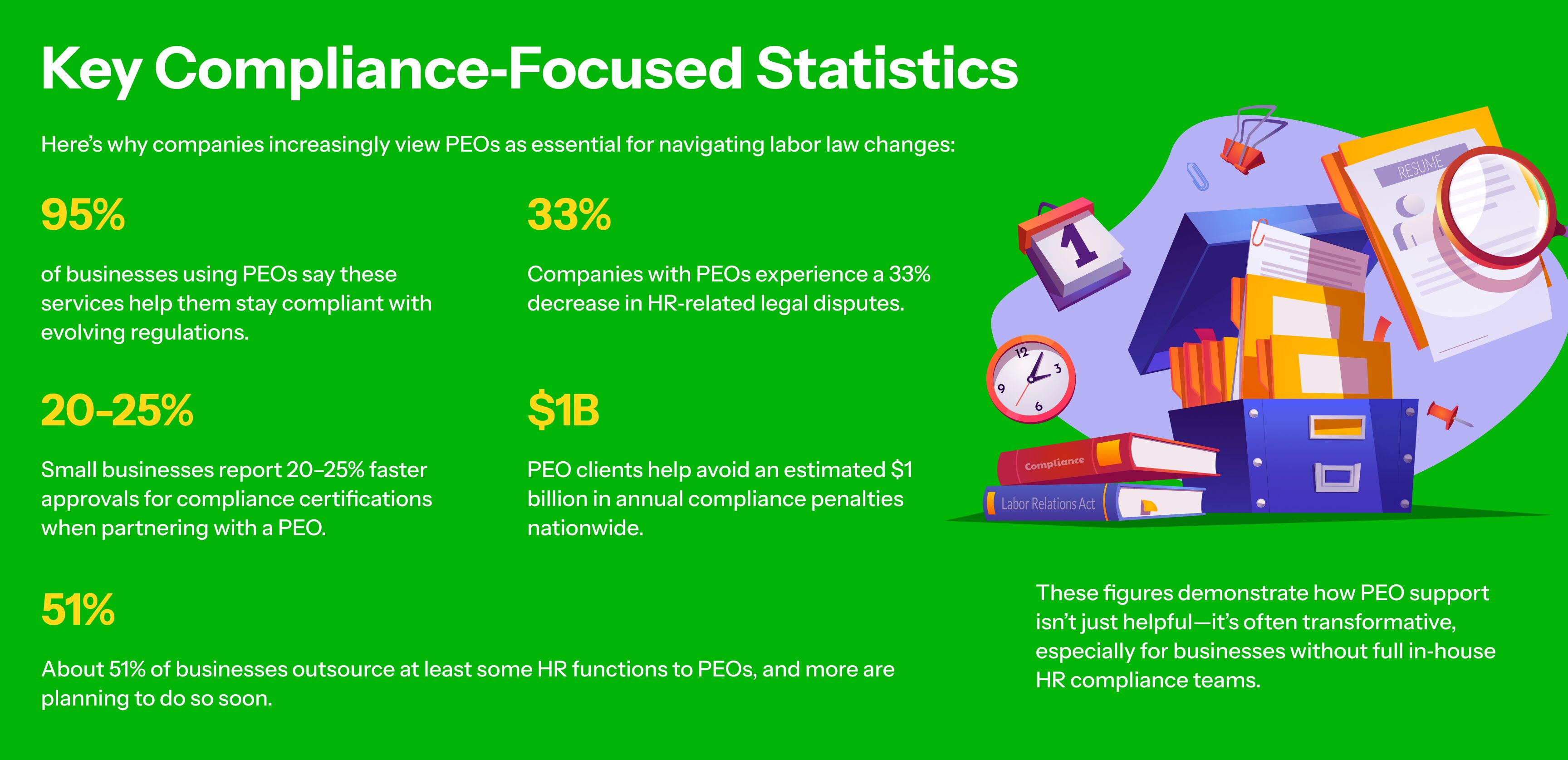 With PEO‑managed compliance systems, companies are far less likely to encounter costly penalties for regulatory violations—helping preserve profits and reputation.