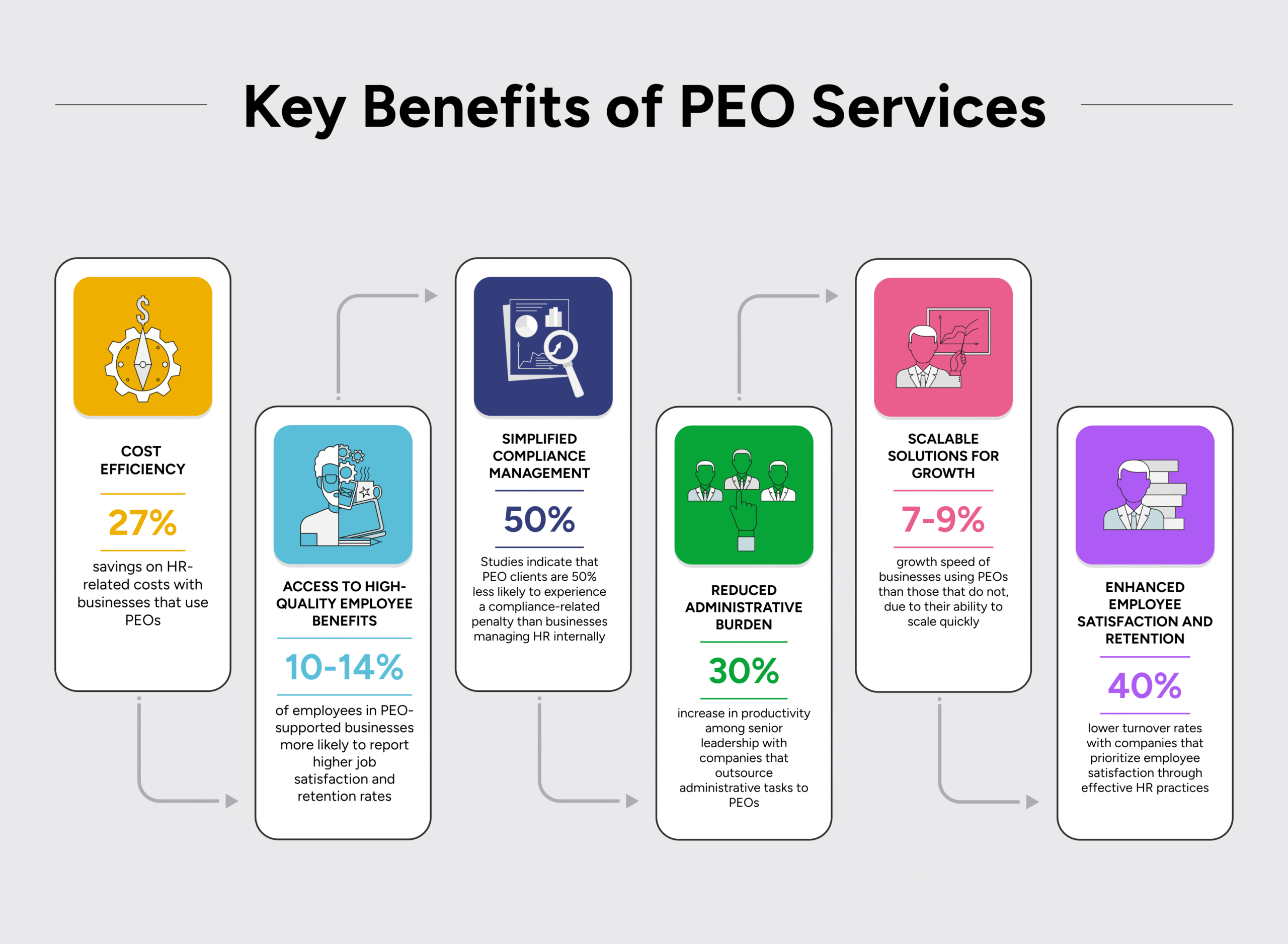 By leveraging economies of scale, PEOs offer smaller businesses access to resources and benefits typically reserved for larger corporations, giving startups and SMEs a competitive edge.