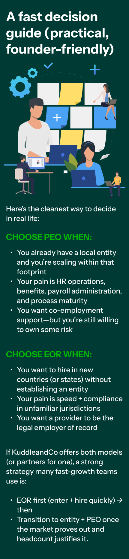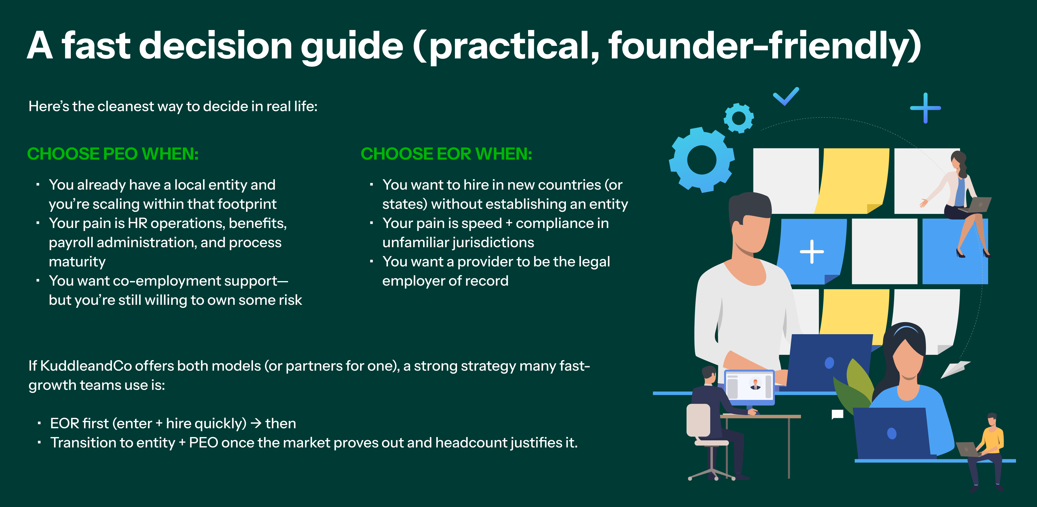 If you’re evaluating KuddleandCo, the smartest next step is to map your 2026 hiring plan by country/state, label which locations have entities today, then choose: