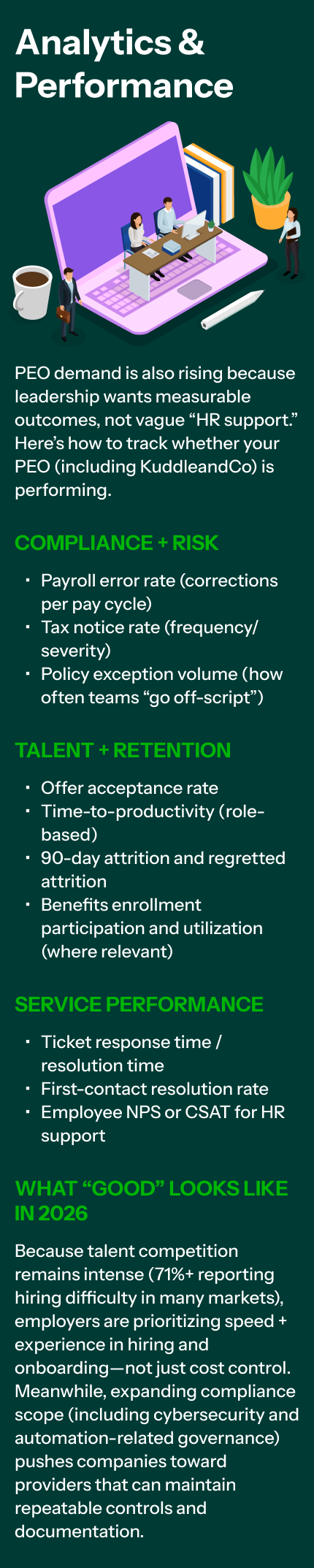 A PEO like KuddleandCo isn’t just an HR vendor—it’s an operating system for scaling: risk controls, benefits competitiveness, and HR execution discipline. The winners in 2026 will be the firms that treat HR infrastructure like a growth lever, not a back-office afterthought.